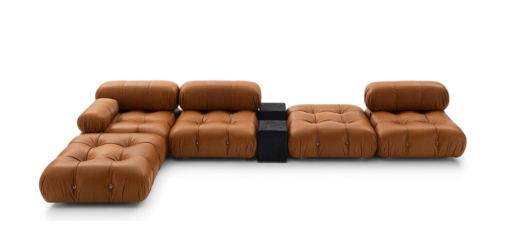 Een concept dat designer Mario Bellini na aan het hart ligt: “Van alle objecten die ik heb ontworpen, is Camaleonda misschien wel het beste ontwerp wat betreft mijn gevoel van vrijheid. Er zijn oneindig veel mogelijkheden.” Bij de heruitgave behoudt Camaleonda de elementen die het tot een eigentijdse klassieker hebben gemaakt. In overleg hebben Mario Bellini en B&B Italia besloten om de cm 90×90 zitmodule, samen met de rugleuning en de armleuning, gelijk te houden aan het oorspronkelijke ontwerp. De royale polyurethaan vulling die het karakteristieke capitonné-ontwerp vormt, blijft ongewijzigd, nog steeds vervaardigd met het innovatieve systeem van kabels, haken en ringen dat Bellini in 1970 creëerde. Doormiddel van de lussen en ringen kunnen de modules naar wens worden losgemaakt en opnieuw worden gecombineerd, waardoor de bank zich kan aanpassen aan de voortdurend veranderende smaak en de dynamische behoeften van de gebruikers. Camaleonda kan worden bekleed met de volledige textiel- en ledercollectie van B&B Italia.