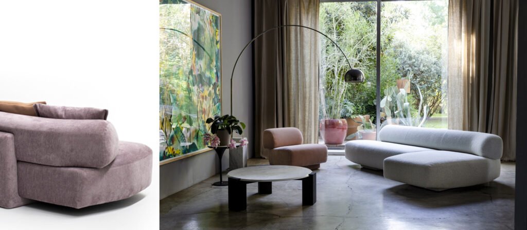 De Gogan-collectie dankt zijn naam aan de Japanse stenen die door water en wind door de tijd zijn glad gespoeld. De vorm van de bank, evenals de vorm van de fauteuil, doet denken aan de platte stenen gebeeldhouwd door wind en water. Stevig en toch zacht genoeg om erop te kunnen liggen. Gogan is leverbaar in diverse maten, elementen en stoffen.