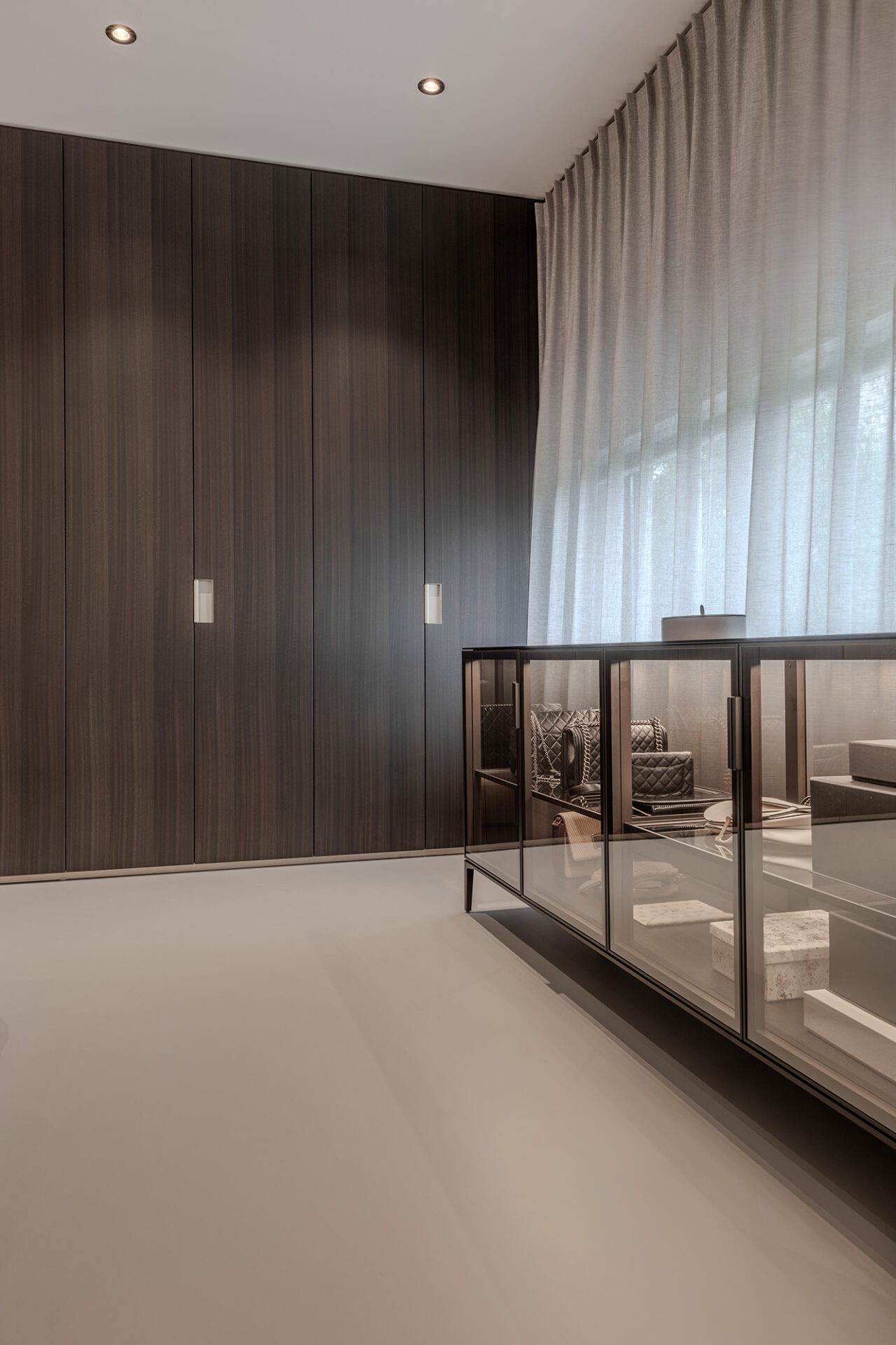 Daarnaast integreren we de meubelkeuzes direct in het proces. Denk aan banken van Minotti of Flexform, iconische stoelen van B&B Italia of maatwerk kasten en deuren van Rimadesio. Door deze merken vroegtijdig mee te nemen in het proces, ontstaat een interieur waarin architectuur en meubilair perfect samengaan.