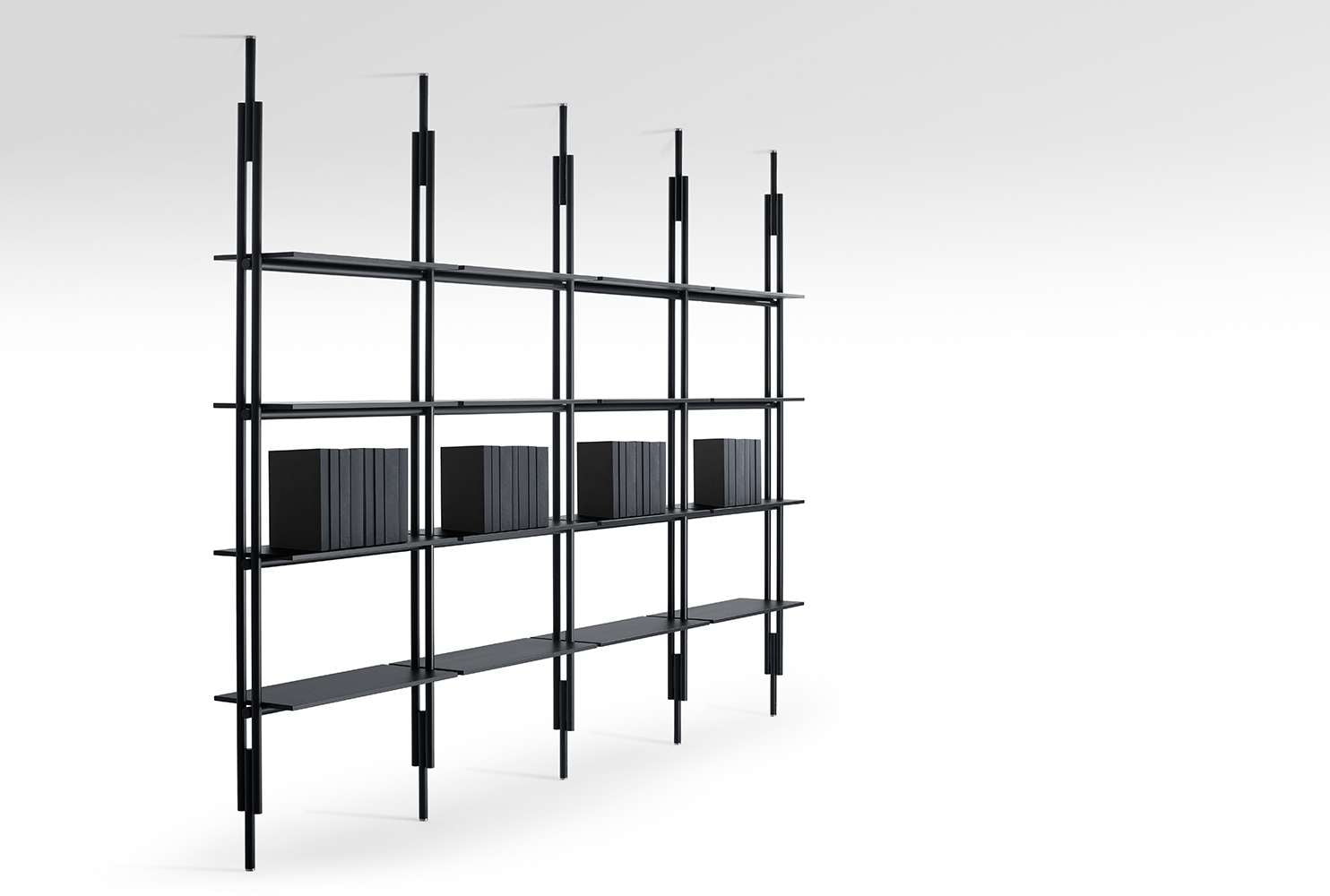 Jack is het resultaat van de eerste samenwerking tussen B&B Italia en Michael Anastassiades. Bekend om zijn vaardigheden in het werken met licht, heeft de Cypriotische ontwerper een modulair boekenkastsysteem ontworpen met een opvallende mate van technologische perfectie. In zijn zoektocht naar de creatie van een innovatieve taal, herontdekt en moderniseert deze ontwerpuitdaging een designklassieker, de boekenkast in de jaren 50 in de ruimte, en transformeert het in een aanvulling met een schone, essentiële en toch architecturale structuur. Het systeem is verkrijgbaar in 14 hoogtes, van 220 cm tot 324 cm en met alle tussenliggende metingen, terwijl de planken in twee lengtes leverbaar zijn, 75 cm en 90 cm, beide 30 cm diep. Het systeem is leverbaar in krijt wit en zwart, beide mat