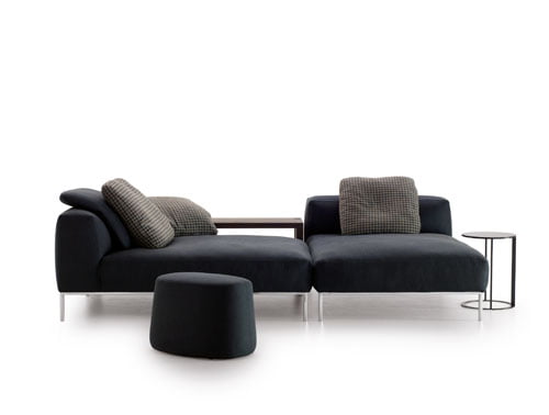 Frank van B&B Italia heeft vele mogelijkheden, er is keuze uit een aantal elementen zoals poefjes en een chaise longue, dit moderne meubel is volledig naar uw smaak samen te stellen. De simpele vormen maken de bank, het dunne aluminium frame is daarnaast een lust voor het oog.