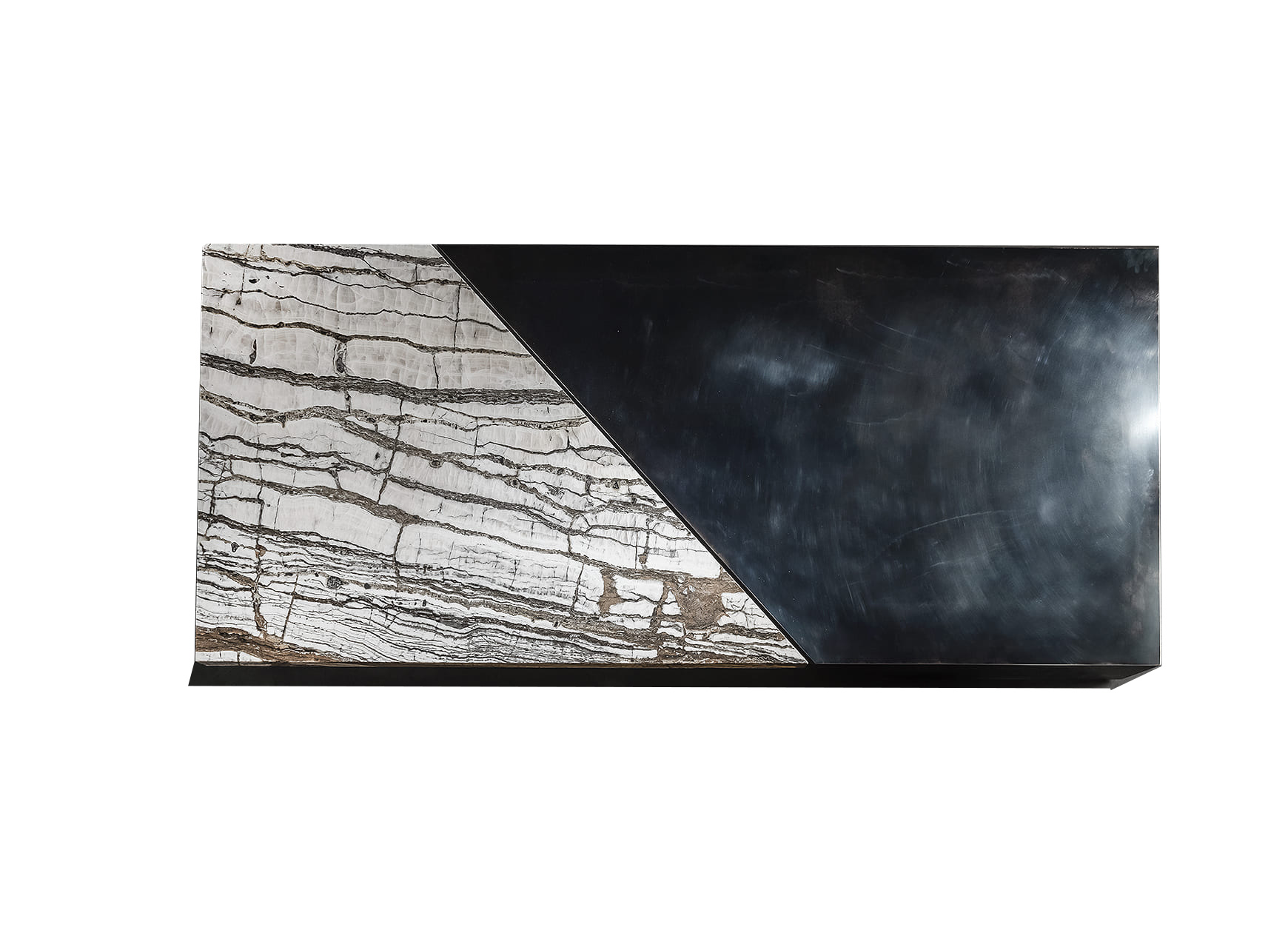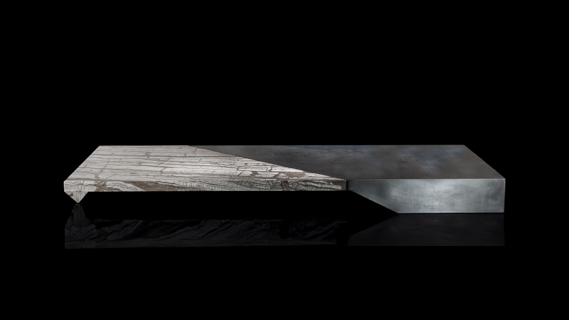 Henge Interlude salontafel belichaamt de kracht van contrast in zijn puurste vorm. Het gedurfde samenspel van metaal en natuursteen, versterkt het sculpturale karakter van de tafel.