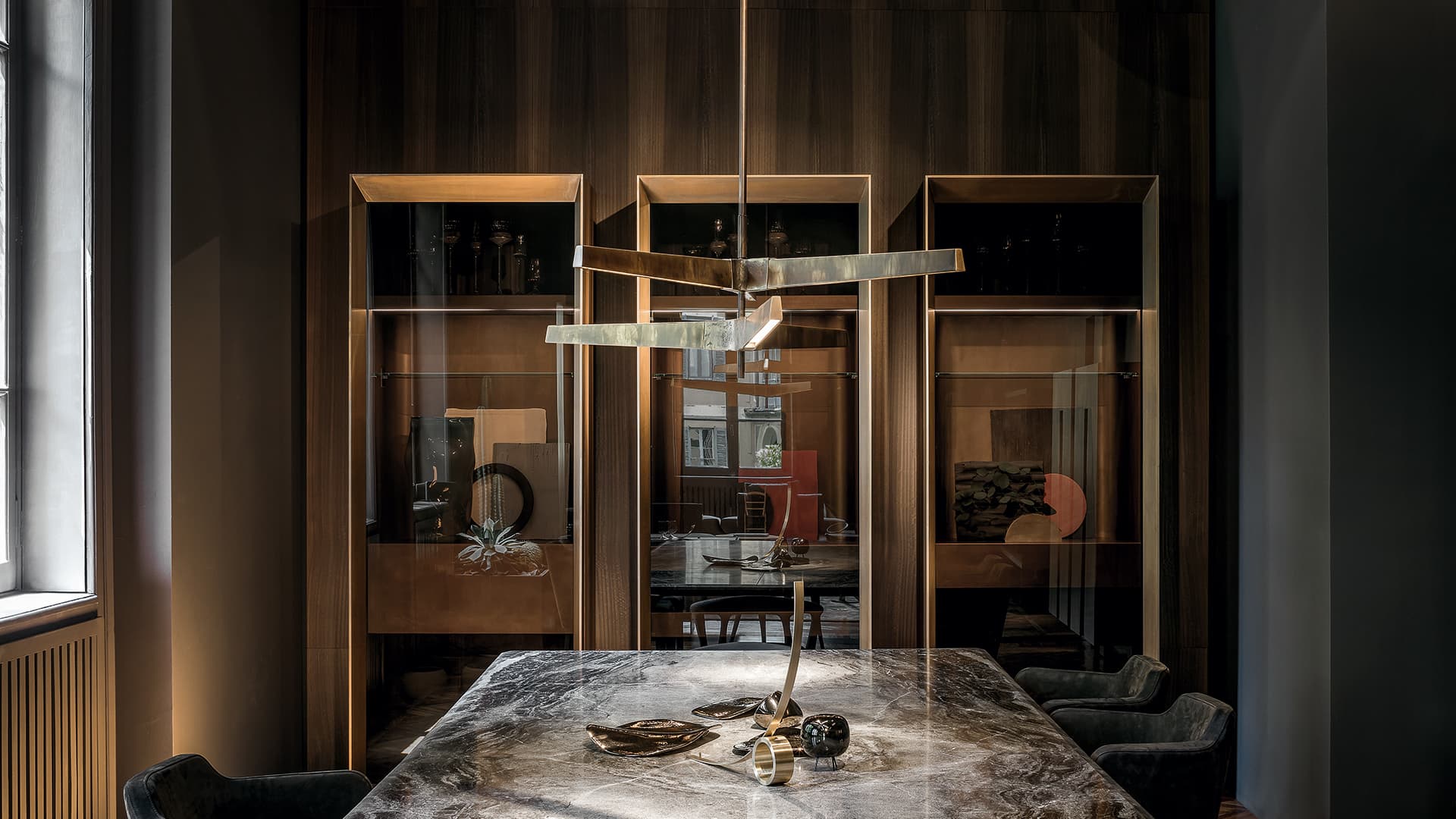 Of maak een afspraak met een van onze interieurarchitecten. Het Henge Loom FR Cabinet ontworpen door Massimo Castagna voor Henge is een vitrinekast met massief houten basis. De draaideur is uitgevoerd in stopsol glas met messing of stalen omlijsting