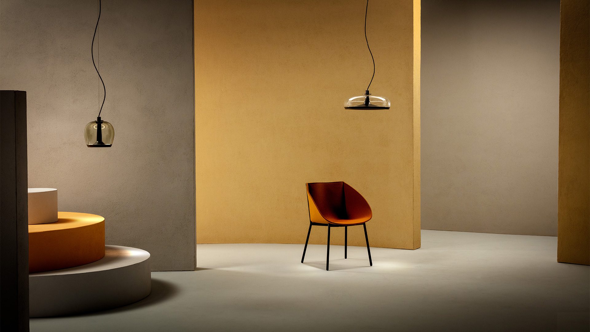 De geometrie van de Aurelia S45 combineert helderheid met structuur. Het glas wordt ondersteund door verfijnd afgewerkte metalen elementen die zorgen voor zowel stabiliteit als een visuele elegantie. Dit subtiele contrast tussen glas en metaal benadrukt de sculpturale kwaliteit van de lamp en voegt een tactiele dimensie toe aan het interieur.