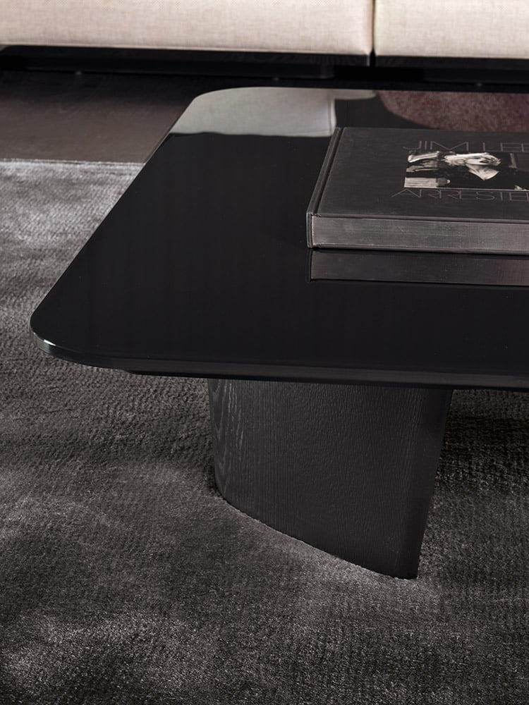 Een verzameling van extreem veelzijdige koffietafels, dankzij de verscheidenheid aan afwerkingen, vormen en aantal beschikbare maten. De basis van de koffietafels van Minotti Song onthult zich in geborsteld eiken met een geschilderde zwarte afwerking. Ze variëren van back-painted glas in zand, graniet en zwart; Naar glanzende lakafwerkingen in zand, graniet en moka; Geborstelde lariks met Licorice vlek; En een luxe Calacutta marmer.
