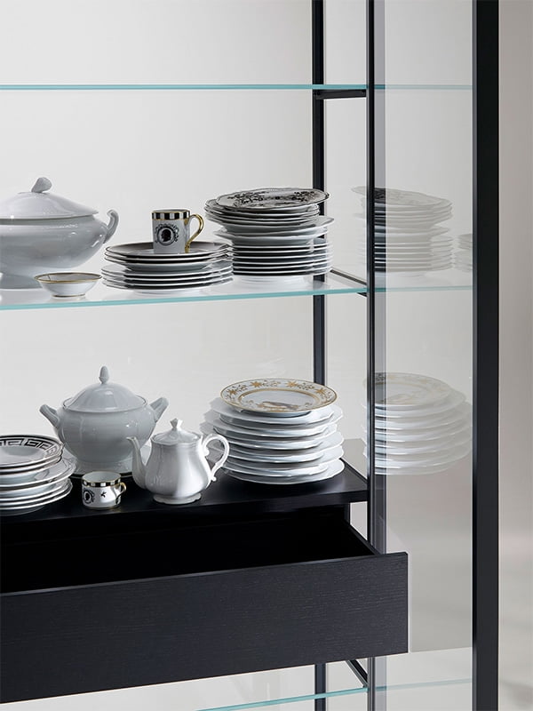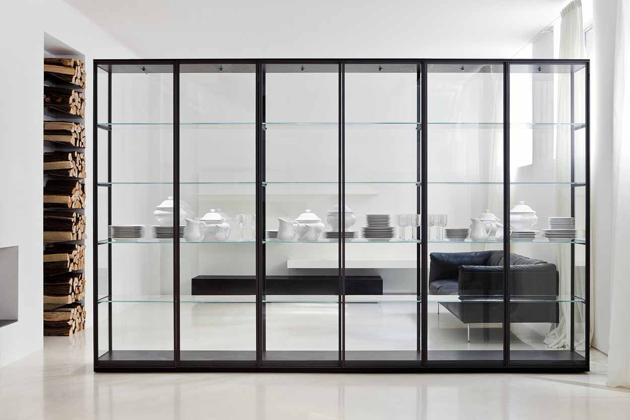 De Porro Ex-Libris design kast is een schitterend vormgegeven vitrinekast, ontworpen door Pierro Lissoni voor Porro. Frame van metaal met achterwanden in hout of glas. Verlichting dmv led. Het is een elementen systeem, de vitrinekast kan dus net zo lang worden als u wilt.