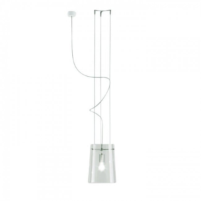 De ophanging en plafondroset van de design hanglamp Notte zijn uitgevoerd in chroom of mat nikkel. De Notte verspreidt een diffuus, direct naar beneden gericht licht en past uitstekend in een moderne interieurinrichting.