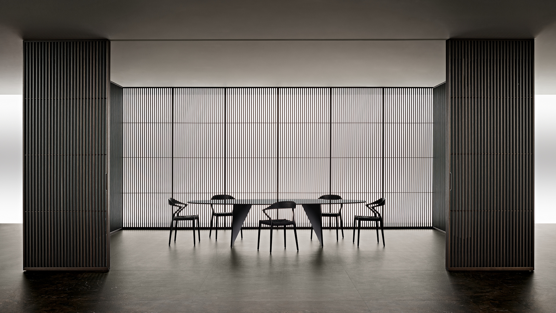 De combinatie van architectonische vormgeving, hoogwaardige materialen en het minimalistische ontwerp van Giuseppe Bavuso maakt deze stoel tot een bijzonder verfijnd designobject.