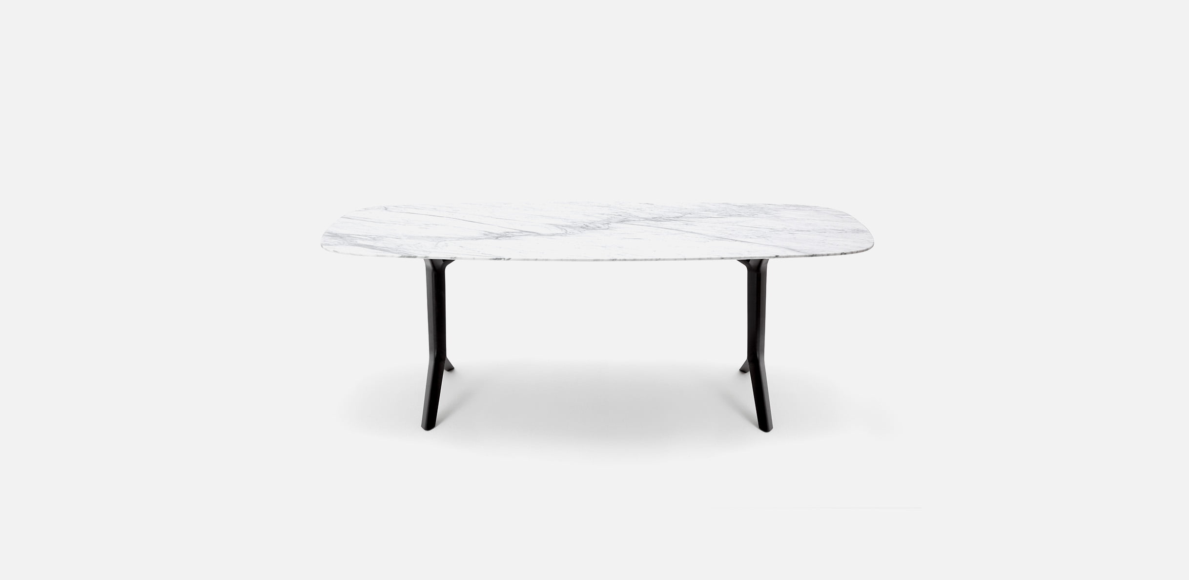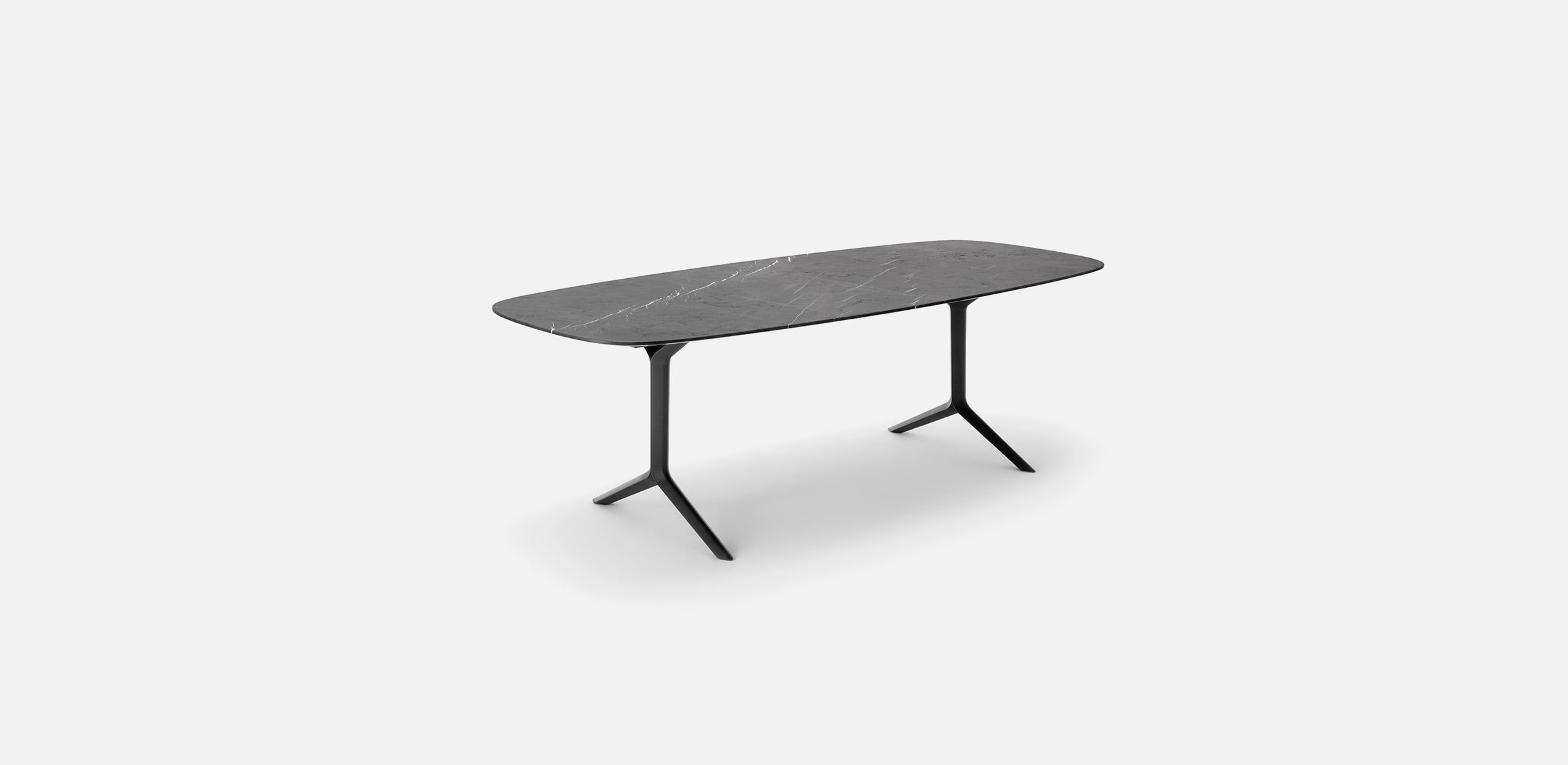 Er zijn maar weinig materialen met zo‘n krachtige uitstraling als natuursteen. De Rolf Benz 966 tafel is een hulde aan dit materiaal en in twee luxueuze uitvoeringen verkrijgbaar: in elegant grafietsteen “Graphit Brown” of wit Carrara-marmer uit Italië. Het blad van de tafel heeft een authentiek bootsvorm en heeft een gelederd oppervlak dat aangenaam warm aanvoelt. De tafel Rolf Benz 966 is in verschillende lengtes verkrijgbaar en de poten van aluminium zijn naar keuze verkrijgbaar in umbragrijs of verkeerszwart.